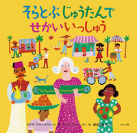 買ったものをじゅうたんにのせて、おばあちゃんは世界を西へ東へ。日本にもやってきます。表紙の裏には、おばあちゃんの旅したルートが一目でわかる世界地図つき。カラフルで、たのしい世界旅行です。