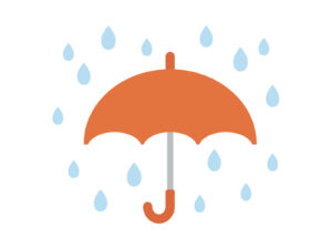 でも はれて いるので、おにわで かさを さして、ながぐつを はきました。