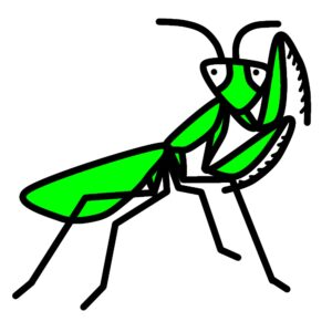 きらわれものの かまきりが いばって かまを ふりあげる。